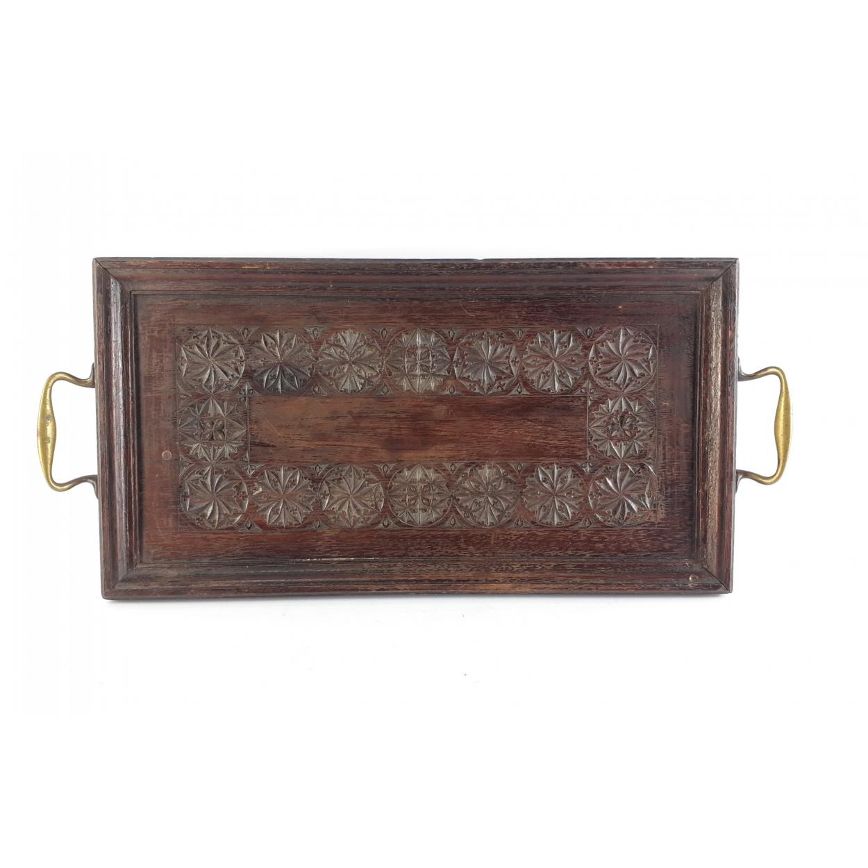 A nice two handled tray with cut / carved incised design. 53cm x 24cm approx. In good condition.