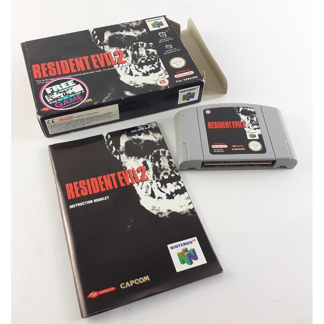 N64 RESIDENT EVIL 2 PAL version game in original box with instruction booklet.