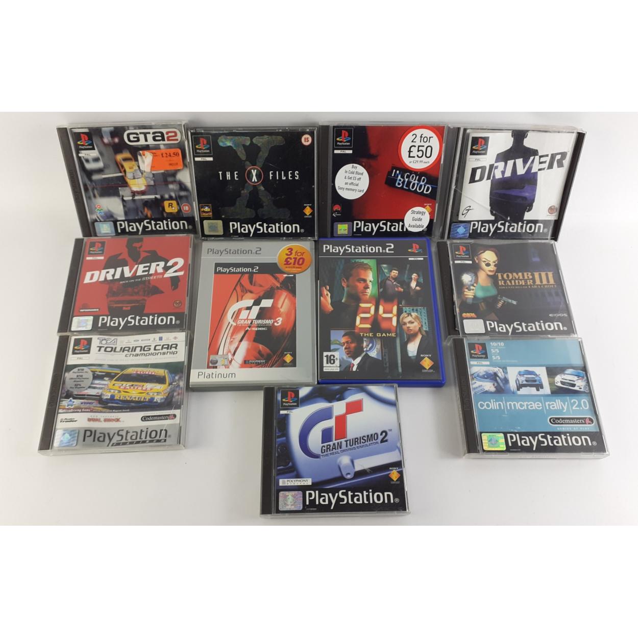 A small selection of SONY PLAYSTATION games. Colin Macrae 2.0, X Files, TOCA, Driver, Gran Turismo, Tomb Raider III and others.