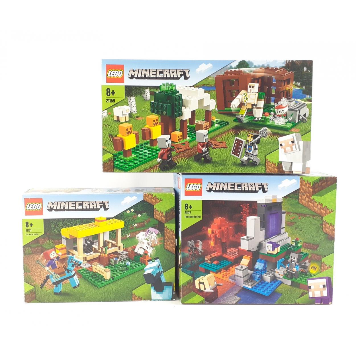 LEGO - MINECRAFT three boxed sets. 21172, 21159, 21171 Note the vendor build the models, dismantled carefully checked each piece and stapled the bags closed.