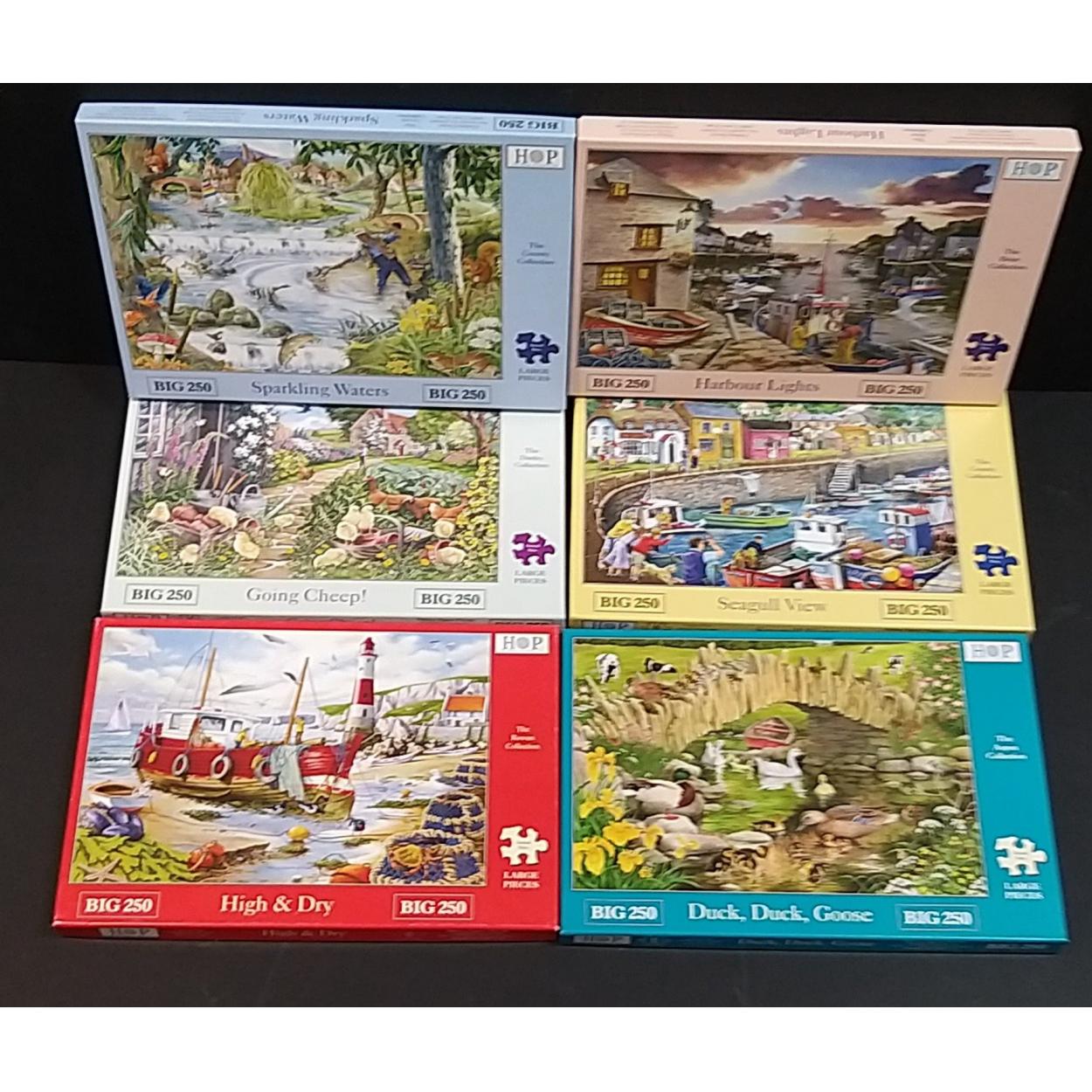 Get ready for the long winter nights. JIGSAWS 250 Piece x 6. All made by HOP. Going Cheep, Seagull View, Harbour Lights, Sparkling Waters, Duck, Duck, Goose, High and Dry. All jigsaws have been checked and are complete and in good condition