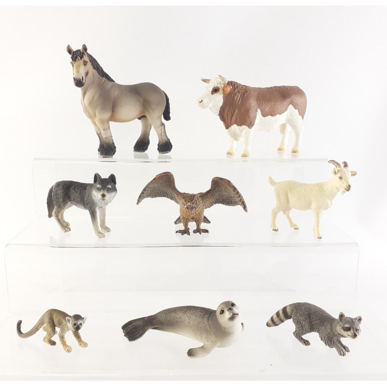 Retired SCHLEICH model animals. Bull, pony, owl, seal etc. Eight pieces all in good well stored condition.