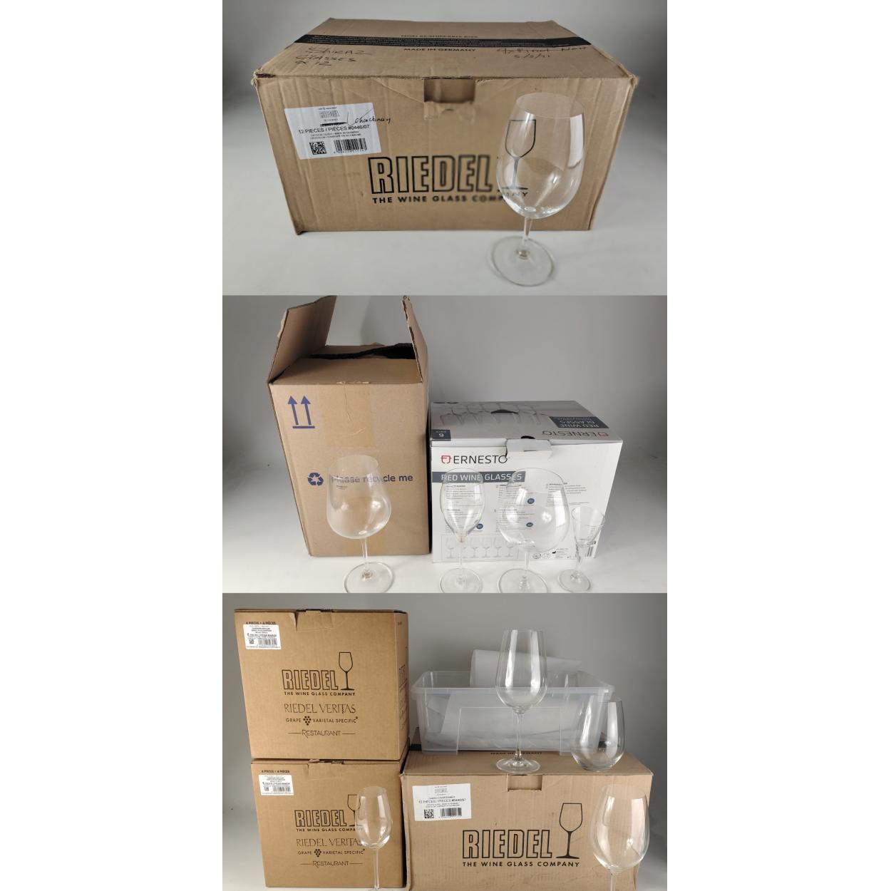 Twenty four RIEDEL large red wine and 12 CHAMPAGNE glasses - 17 assorted glasses mixed makes (not Riegel) etc - TOP CLASS glass maker and the festive season just around the corner - all in boxes - CHEERS!