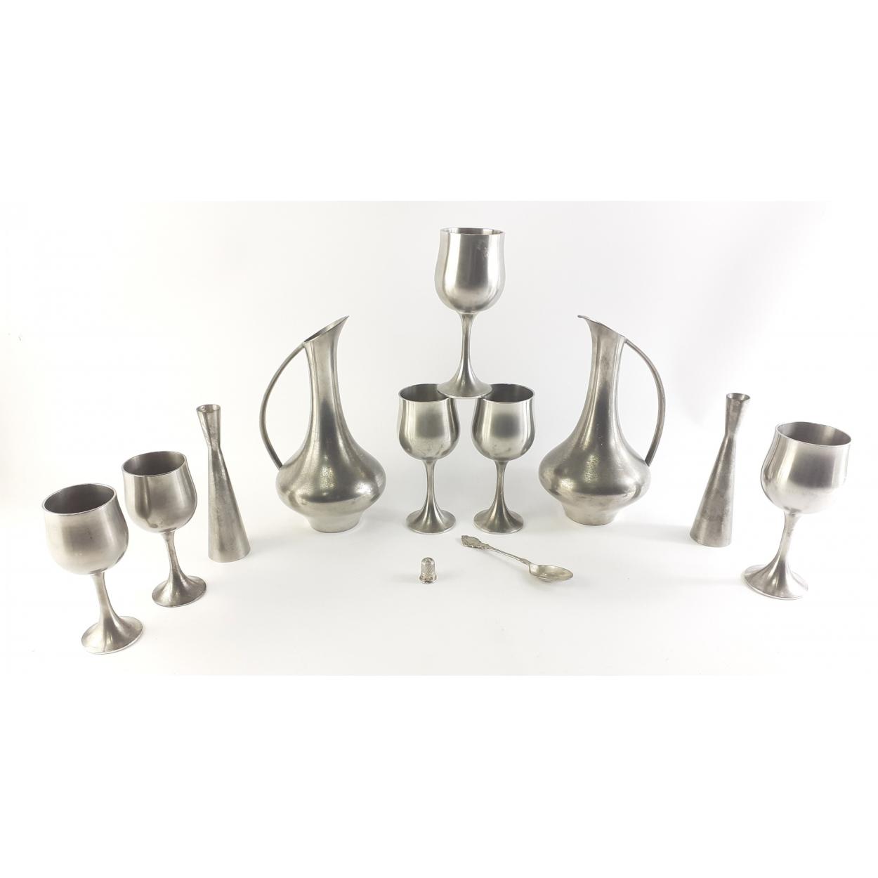 A nice collection of SELANGOR pewter to include 2 flasks, 4 wine goblets and 2 smaller goblets plus two posy vases (15cm approx)