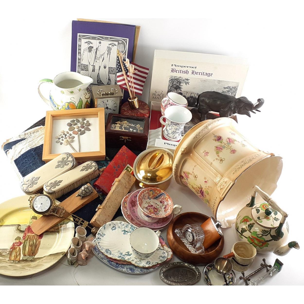 A mixed lot to include a collection of ceramic and decorative items, Royal Doulton plate, decorative elephant, painted jug and much more.