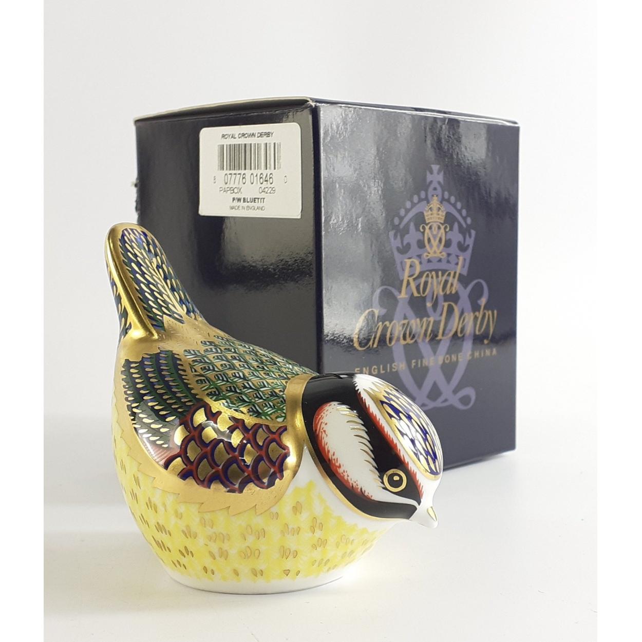 ROYAL CROWN DERBY Gold Button BLUETIT paperweight boxed and in lovely condition.