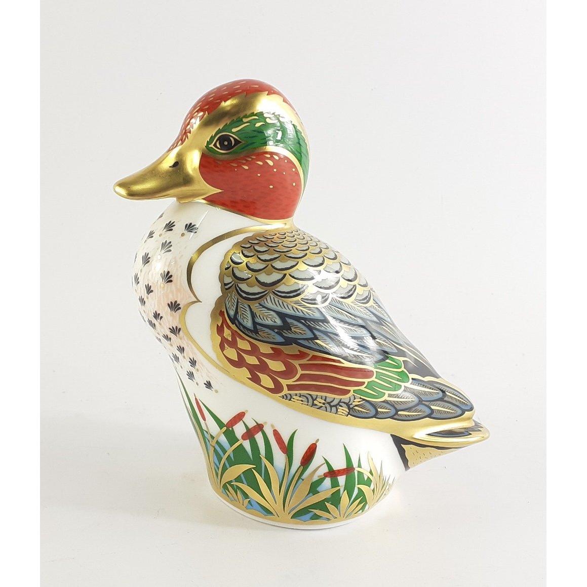 ROYAL CROWN DERBY Gold Button GREEN WINGED TEAL Collectors Guild item. Signed Sue Fisher 2/12/2006. Unboxed in lovely condition.