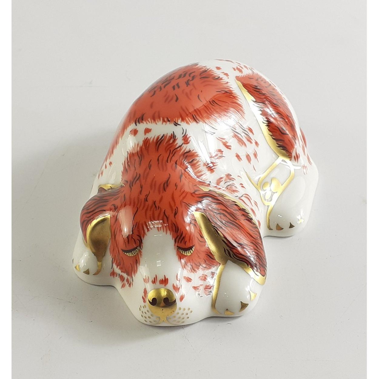 ROYAL CROWN DERBY Gold Button PUPPY Collectors Guild item. Unboxed in lovely condition.