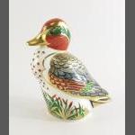 ROYAL CROWN DERBY Gold Button TEAL DUCKLING signed Sam Fisher 2/12/2006