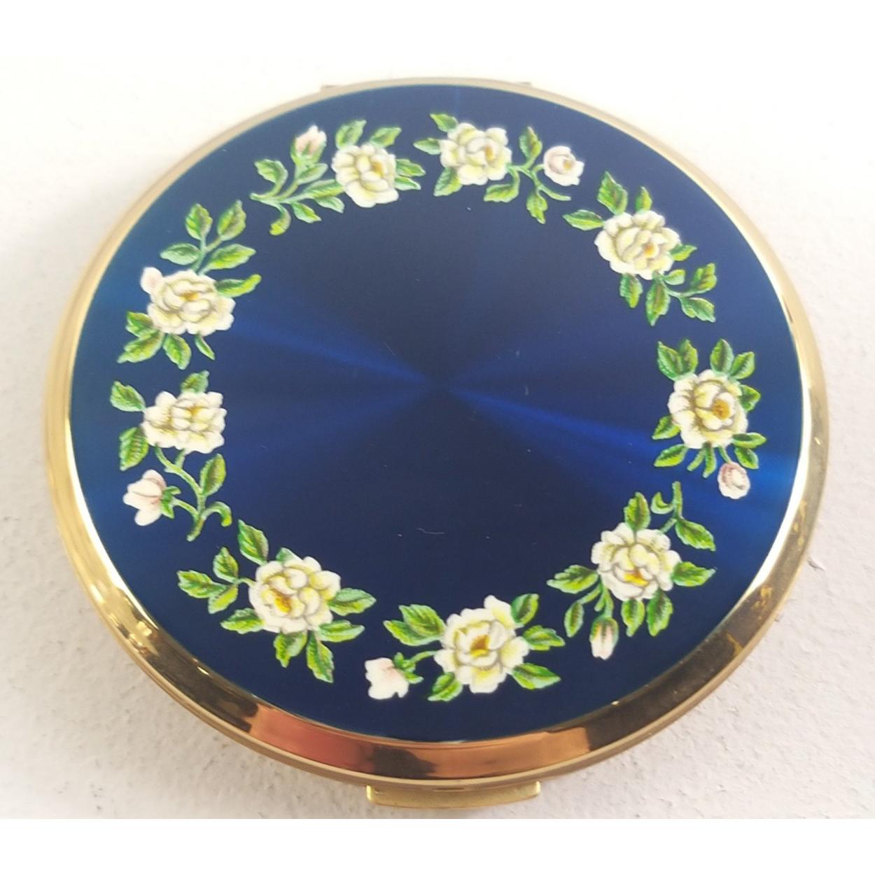 A STRATTON powder compact with enamel front with rose design, 80mm approx.