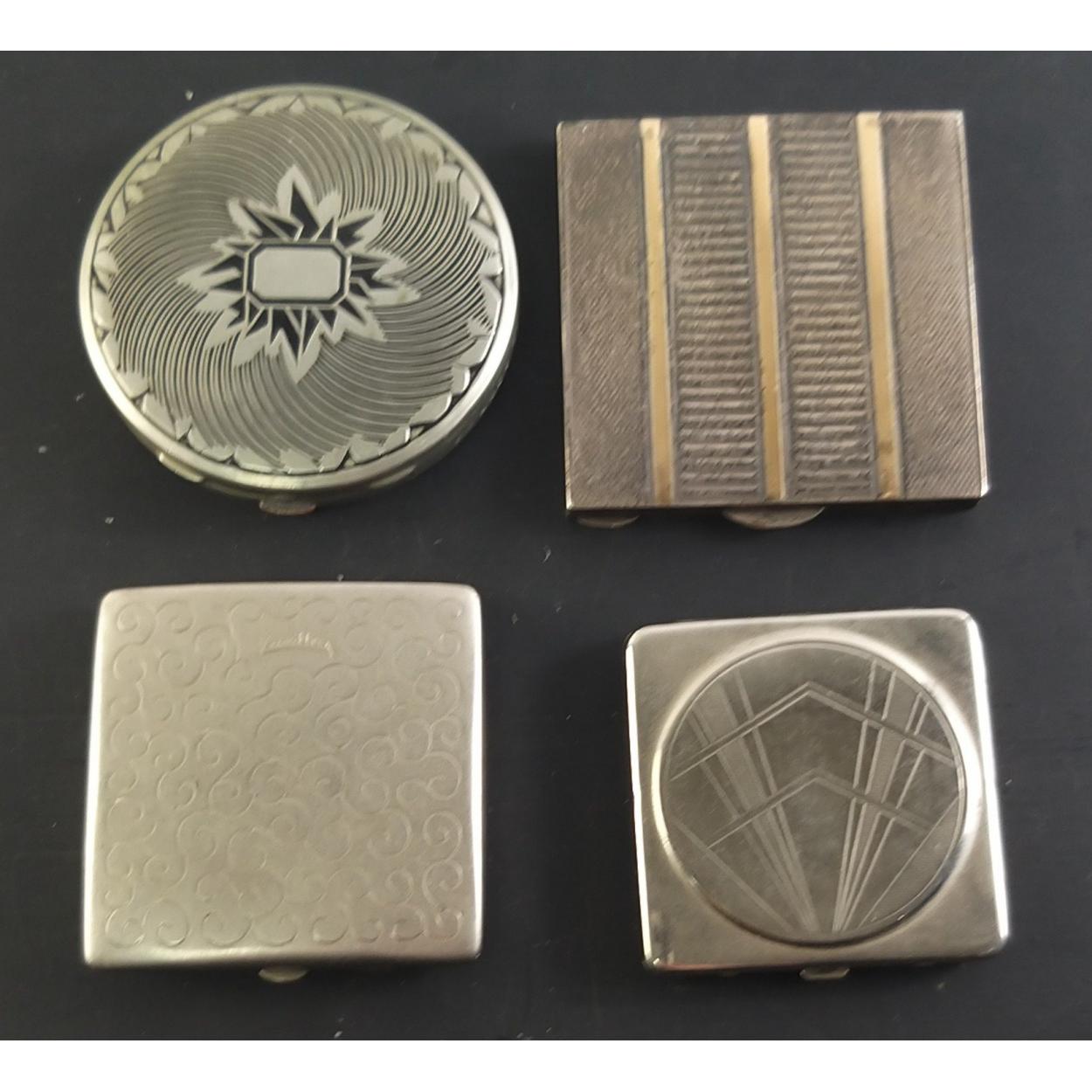 Four small powder compacts including one Austrian silver (6 x6.5cm approx),
