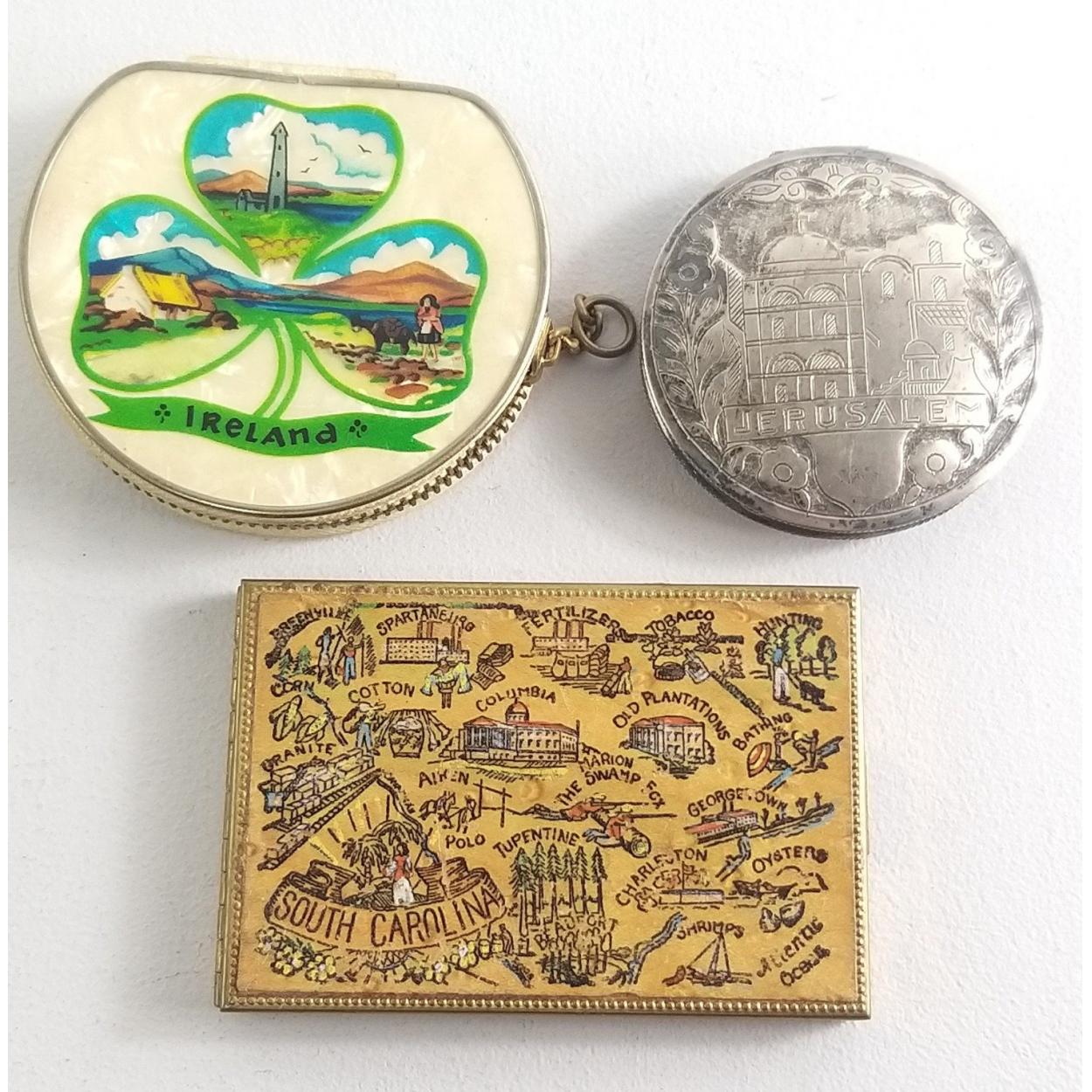 Three international powder compacts to include Ireland, Jerusalem and South Carolina USA