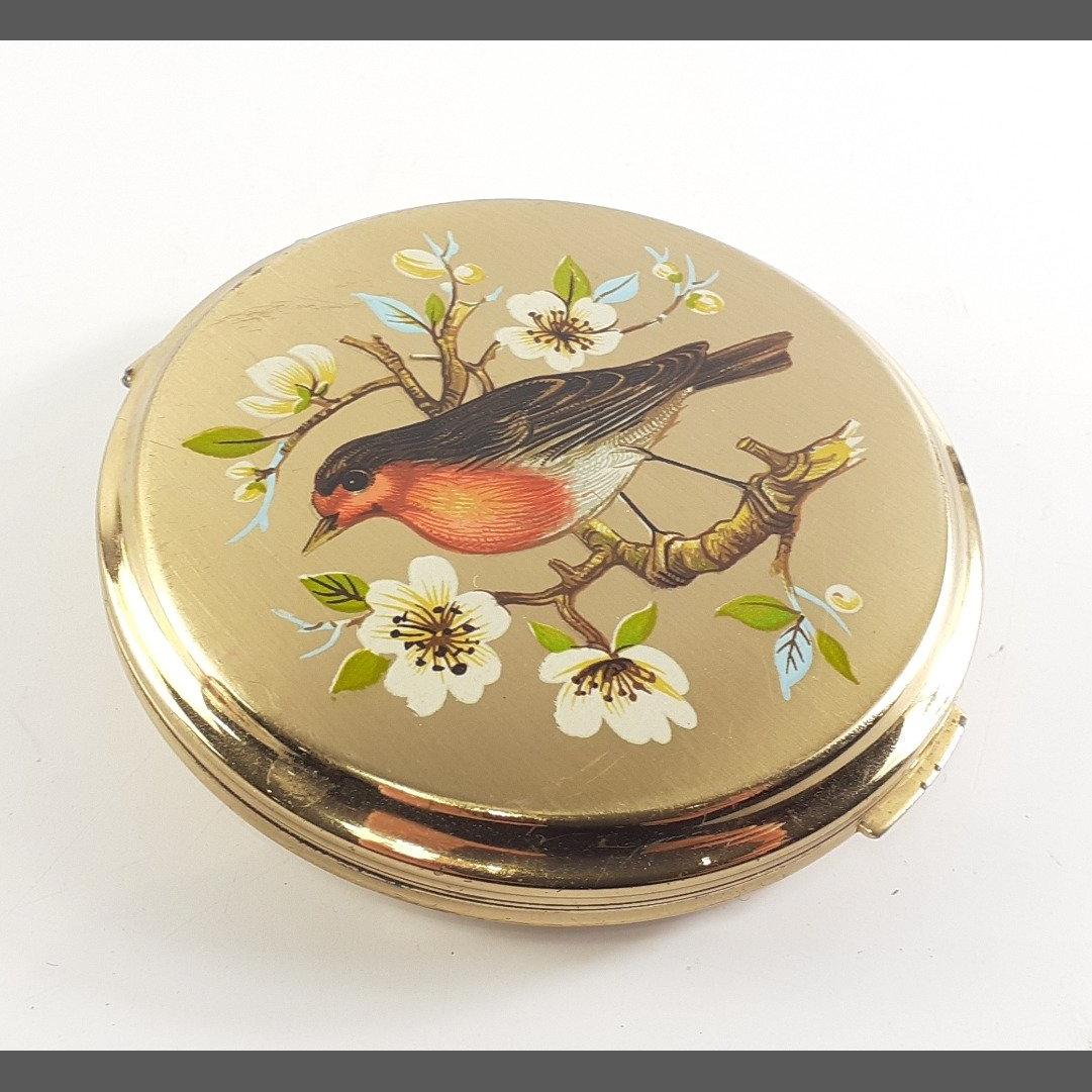 A STRATTON powder compact with robin redbreast to front 80mm approx. In excellent condition.
