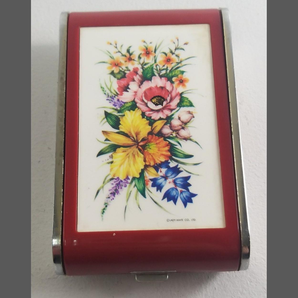 A 1950s DANDY-MATE Silvia musical powder compact. Plays Lara's Theme, 11cm approx. Good condition.