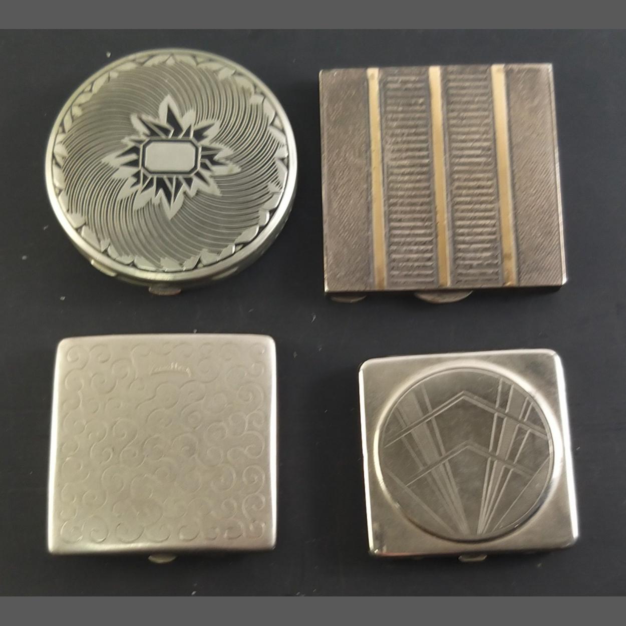 Four small powder compacts including one Austrian silver (6 x6.5cm approx),