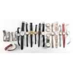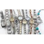 An interesting collection of ladies wrist watches, unchecked. Most will require batteries.