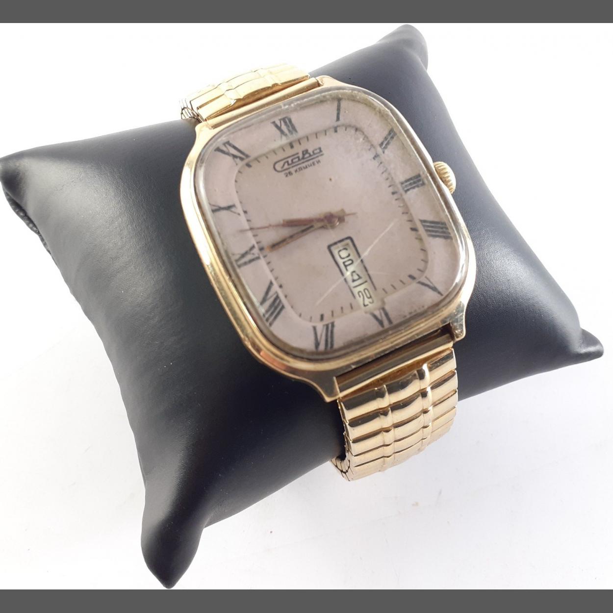 USSR vintage Soviet era SLAVA 'Fridge' watch with cyrillic months. The crystal does have scratches. The watch was working at valuation but untested for accuracy.