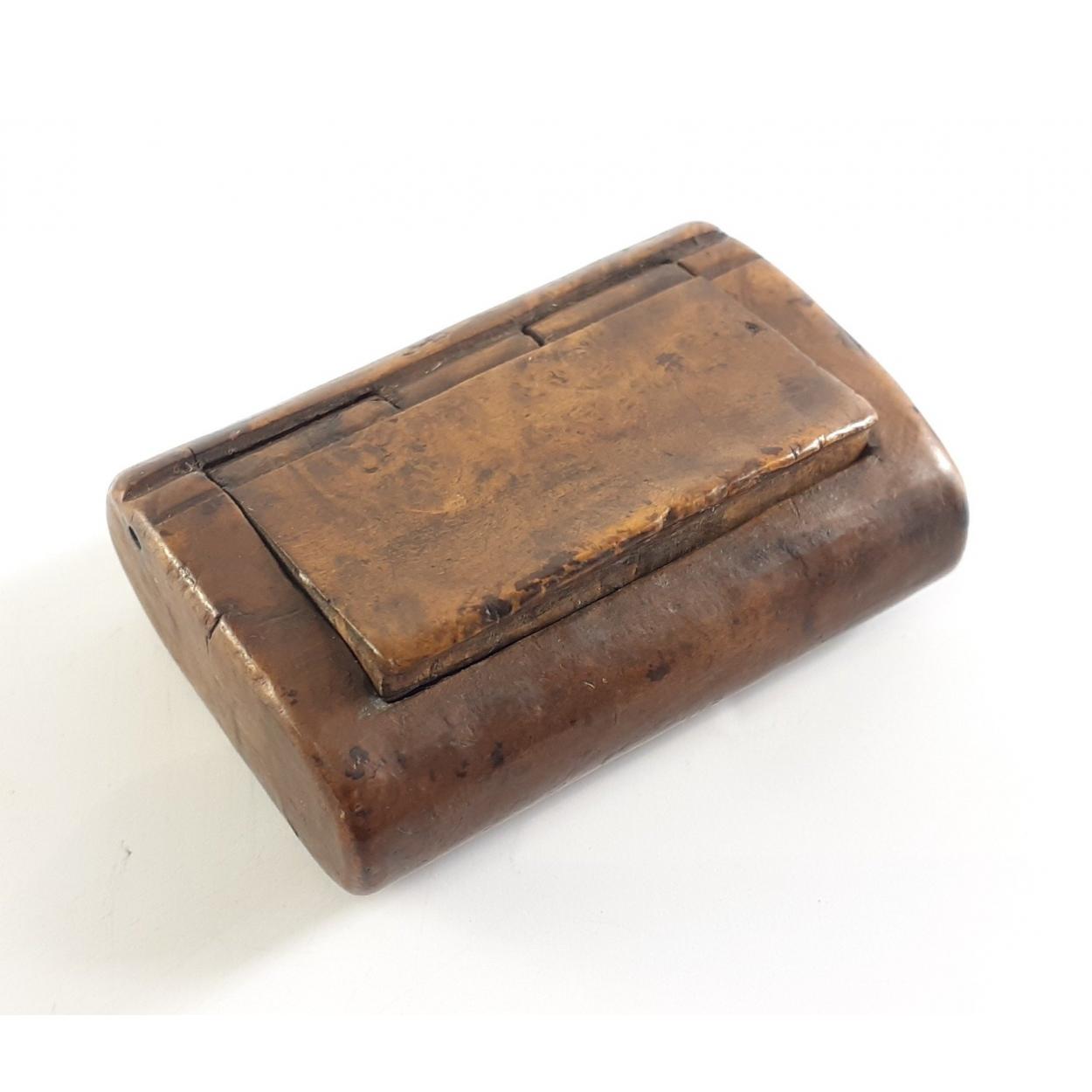 A beautiful small wooden lidded snuff box. A gorgeous little antique piece in lovely condition. 42mm wide approx.