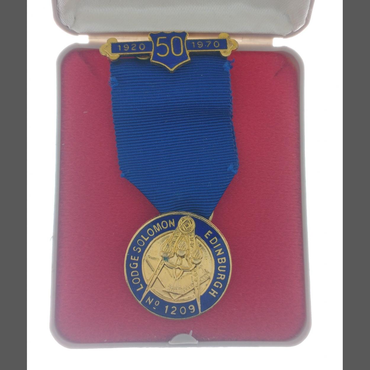 MASONIC INTEREST LODGE SOLOMON EDINBURGH No 1209 50 Year Commemoration medal 1920-1970 with ribbon with its jewellers presentation box