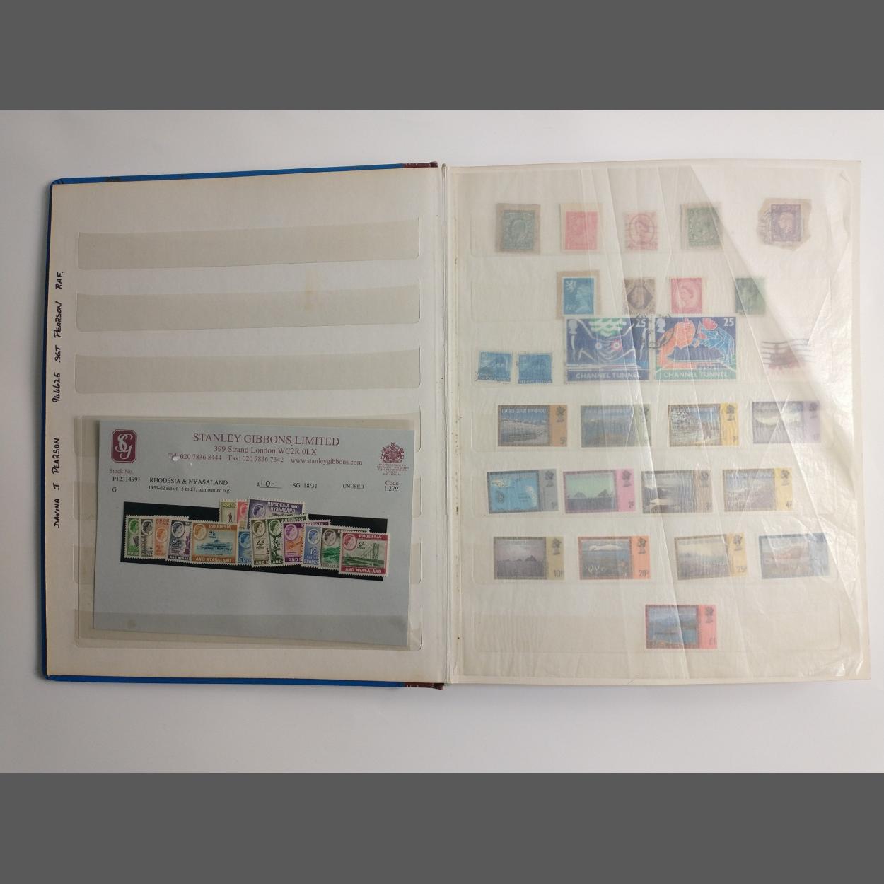 A STANLEY GIBBONS card with RHODESIAN and Nayasaland 1959-62 set of 15 to £1 unmounted with an album full of WORLD stamps, a really nice collection!