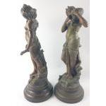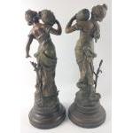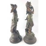 Contemporary Bronze Figural Sculpures Pair of SENTIER FLEURI BY Moreau bronze figurines with carrying fruit bowl and a water urn respectively - both are signed L&F MOREAU height 45cm each