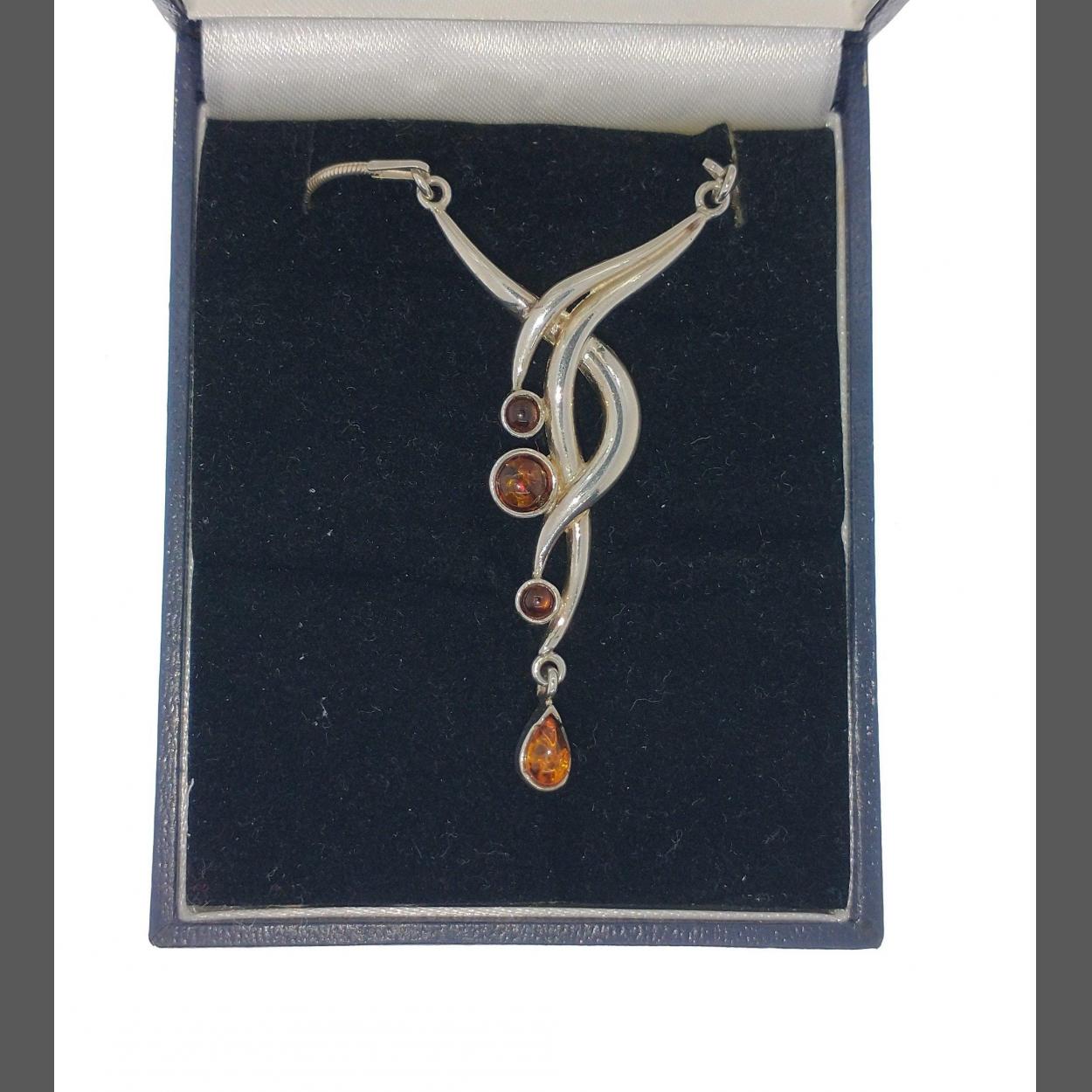 A 925 silver Art Nouveau style necklace with amber stone approx. 20cm length gross weight 7.8gms.