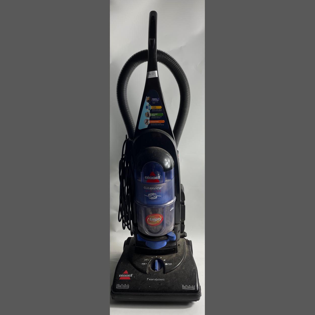 An electric BISSELL CLEANVIEW carpet shampooer with easy empty dirt container with 7 height adjustments
