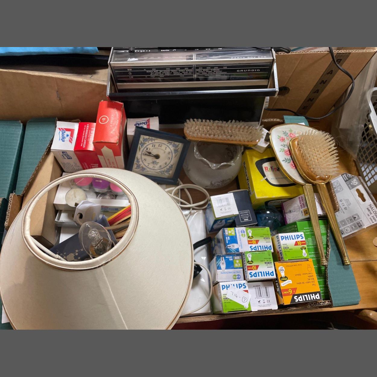 MIXED BOX to include a quantity of LIGHTBULBS, TEALIGHTS, CANDLES, printer paper, a small table lamp etc.