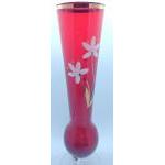 Pair of red fine-glass hand-painted vases (approx. 20cm tall) with small vase (approx. 9cm high)