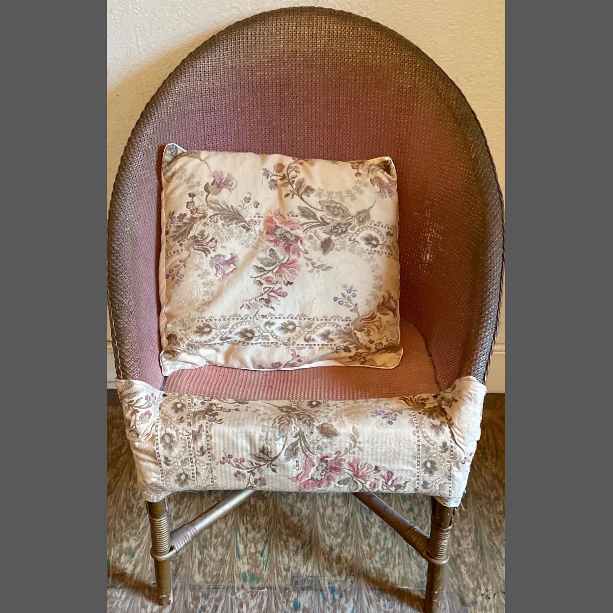 A very VINTAGE LLOYD LOOM style chair in original pale pink and faint gold painted edges