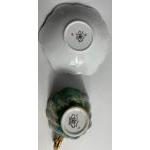 ROYAL STUART Harlequin tea service of 6 different coloured cups, saucers and side plates all with scallop edge and gold trim.