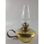 Lovely little OIL LAMP with brass-effect base, approx. 22cm high, chip out of base of chimney.