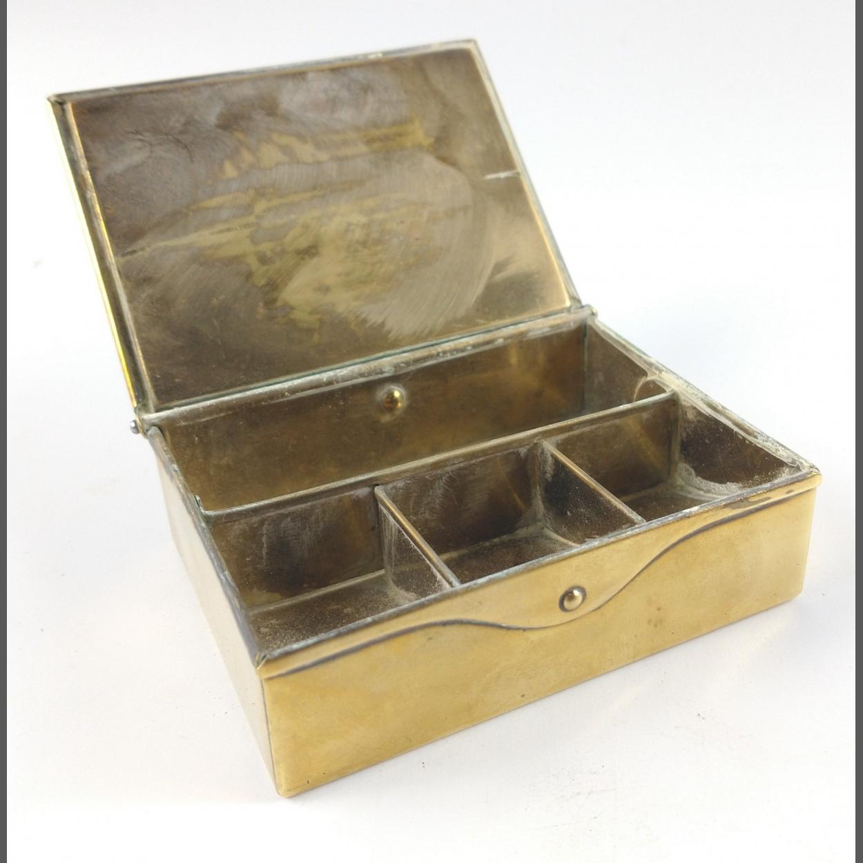 QUALITY Vintage brass box with three sloped sections (stamps?) and a hammered effect top