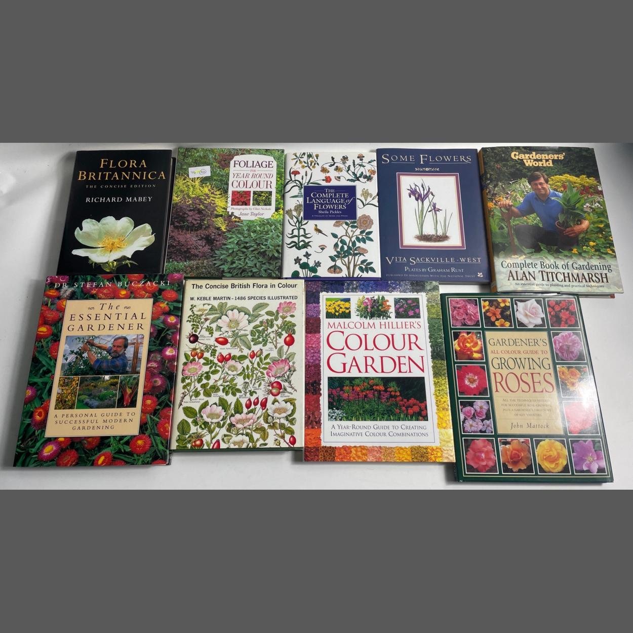 Floral gardening books to include THE QUEST FOR THE ROSE by Roger Phillips, GARDENER'S GUIDE TO GROWING ROSES by John Mattock, PRUNING by Christopher Brickell, PLANT PROPAGATION by Philip McMillan Browse, FLORAL BRITANNICA by Richard Mabey, THE COMPLETE LANGUAGE OF FLOWERS by Sheila Pickles, SOME FLOWERS by Vita Sackville-West,THE CONCISE BRITISH FLORA IN COLOUR by W. Keble Martin, COLOUR GARDEN by Malcolm Hillier, FOLIAGE FOR YEAR ROUND COLOUR by Jane Taylor. All in excellent condition.