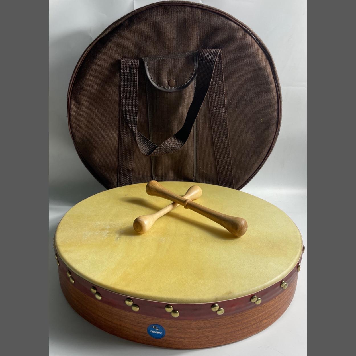 A BODHRAN with large and small drum-stick by maker ‘DEADRAT' with zipper case