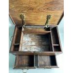 A PEARL MERCHANTS BOX FROM OMAN made from local hardwood with solid brass fittings, two drawers and top storage compartments with a small bag of Frankincense thrown in!!