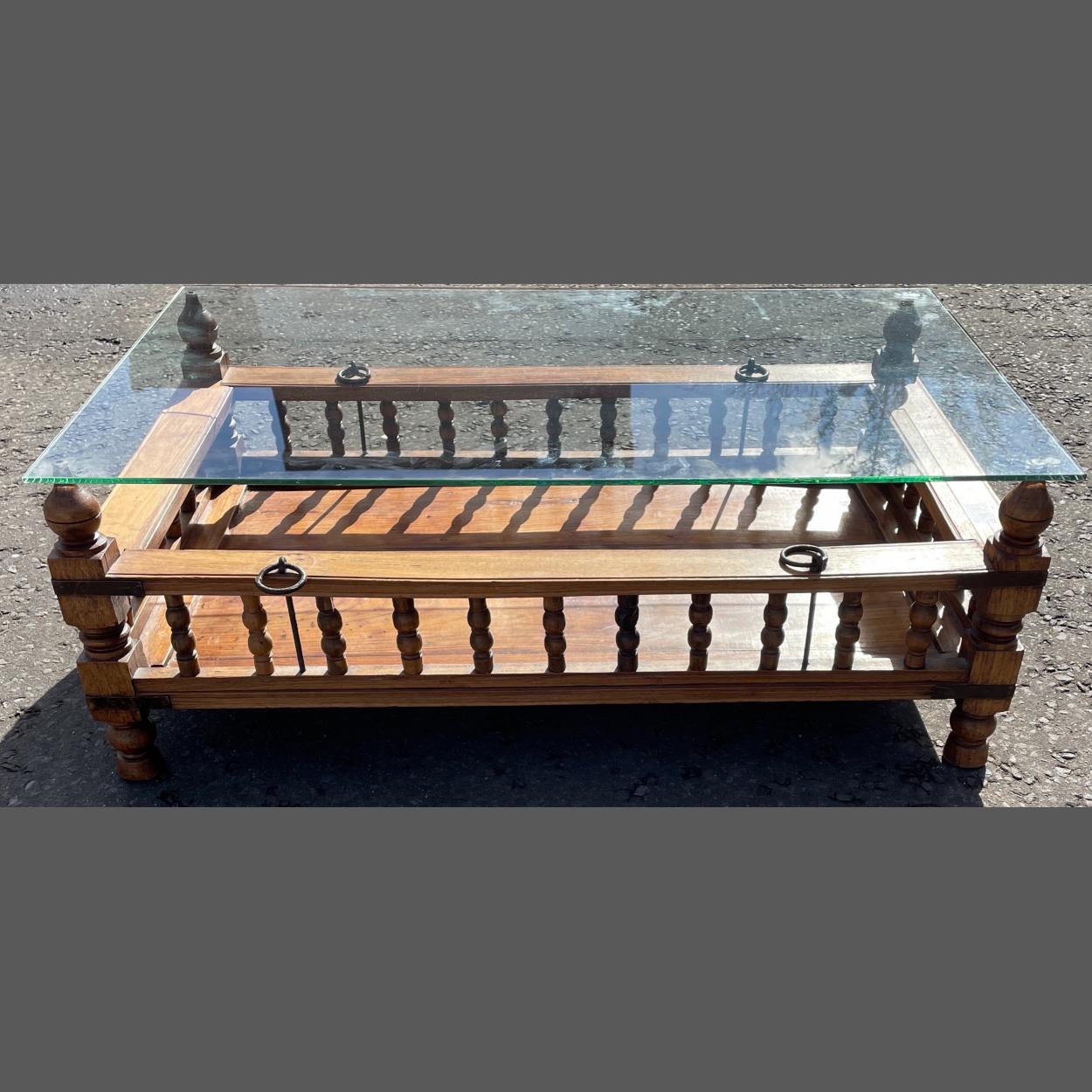 BEDOUIN CRADLE converted for use to a coffee table with glass top - REALLY UNUSUAL