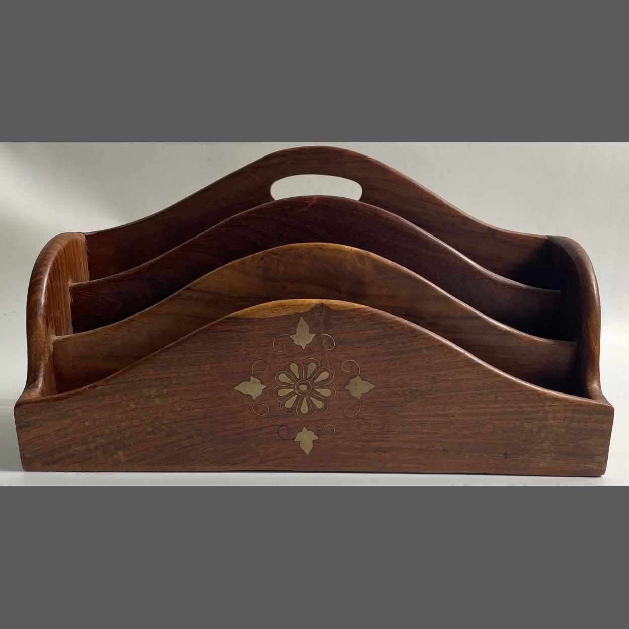 Wooden LETTERRACK with brass inlay 30cm wide, 17cm. tall. Handmade in India - NICE QUALITY!