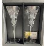 WATERFORD CRYSTAL THE MILLENNIUM COLLECTION TWO LARGE CHAMPAGNE FLUTES in original gifting box. Engraved with haystacks. Label to side says 'Prosperity'