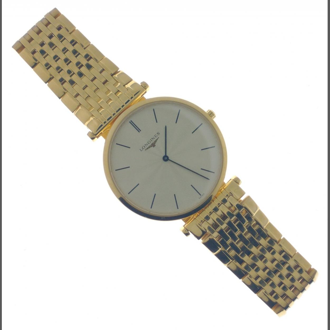A gents LONGINES QUALITY ‘wafer thin' wrist watch with yellow metal watch strap