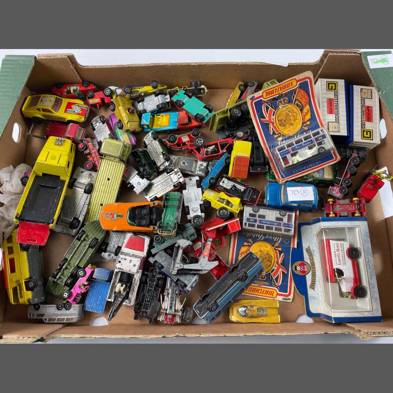 A mixed collection of PLAYWORN CORGIS, MATCHBOX, DINKY, LESNEY ETC ETC die-cast cars