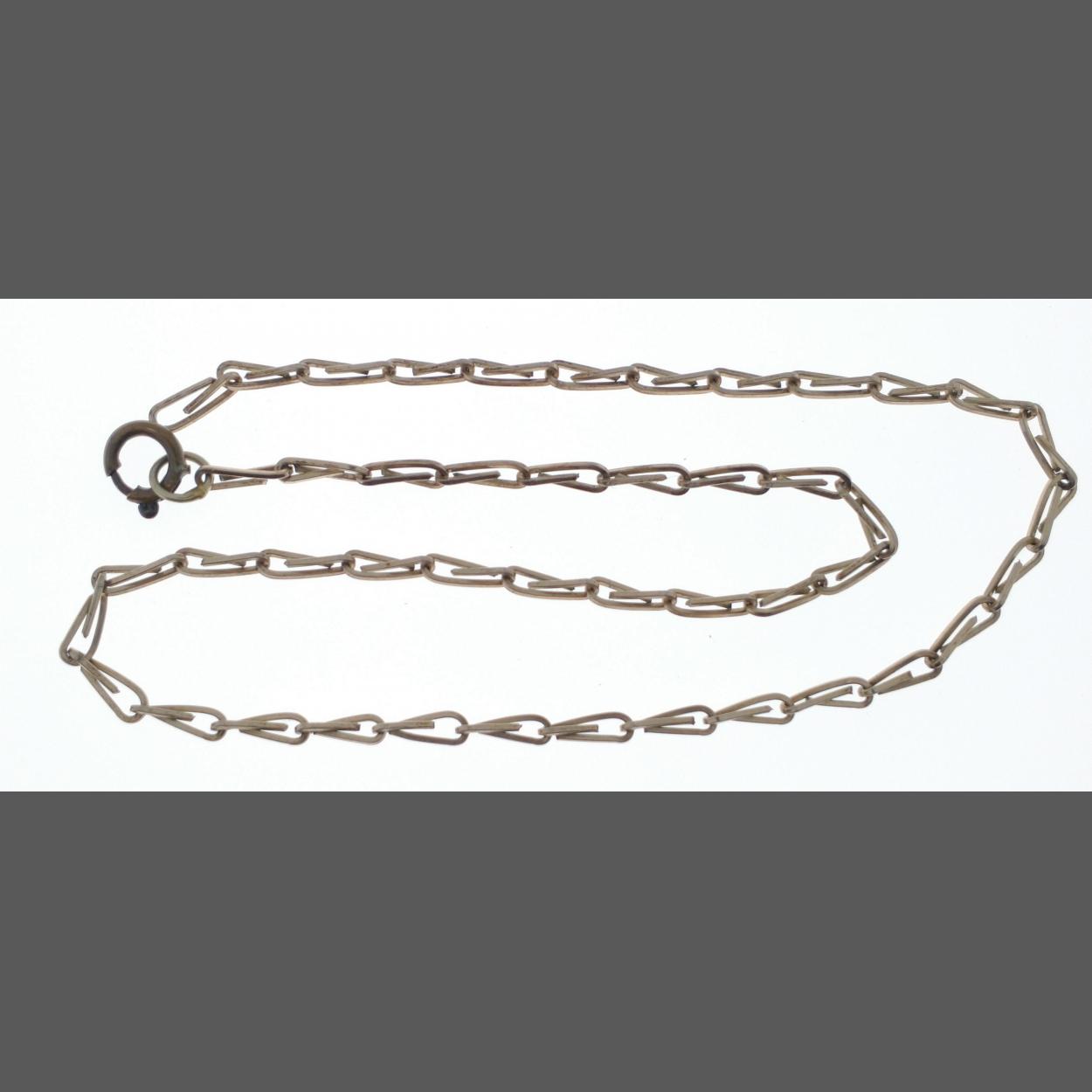Yellow metal chain, 35cm approx. does not react to magnet, gross weight 4.8gms.