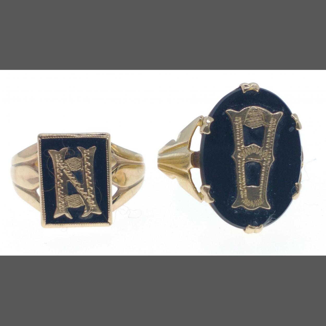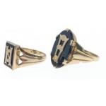Of Masonic interest - 2 rings one stamped 9Kt size M, the other hallmarked 375, size O, gross weight 5.7 gms for both
