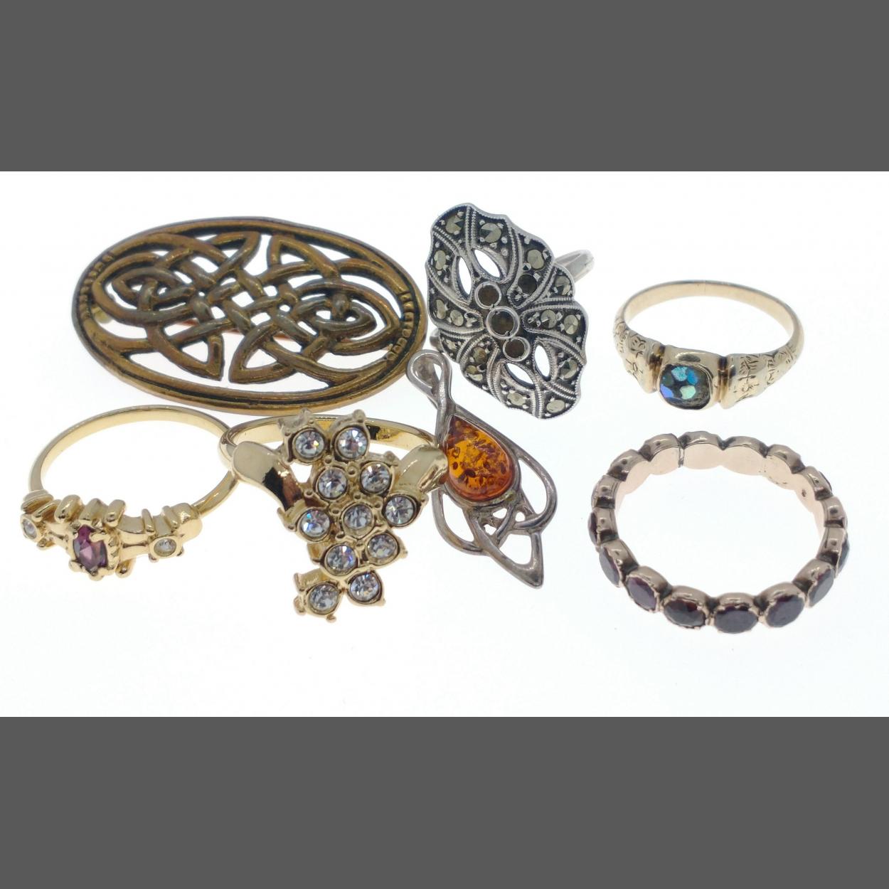Small collection of jewellery to include a 925 stamped pendant, plus some rings which do not react to the magnet test and one stamped "silver" (3.9ms).