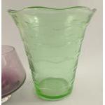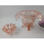 Vintage coloured glassware to include a peach-coloured pressed glass vase with insert - unusual and a Caithness-style wedding brandy bowl.