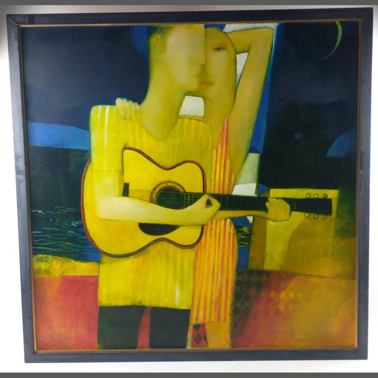 JONATHAN HOOD original (Scottish Artist b1957-) 'New Moon' oil on board signed and dated by the artist 2003 verso, dimensions 76cm x 76cm