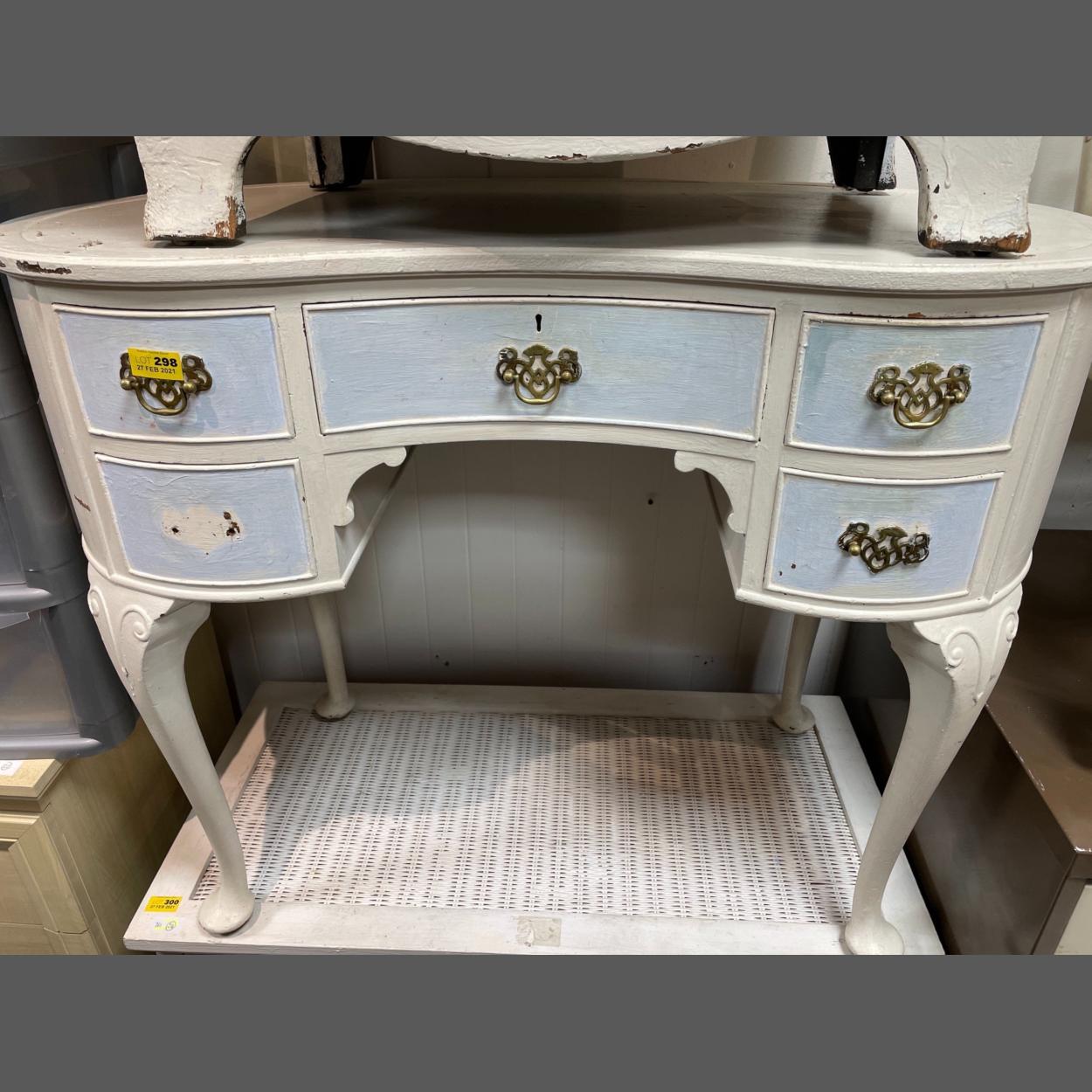 A four drawer SERPENTINE inspired fronted knee-hole chest of drawers L 60cm x 45cm depth and kidney shaped five drawer dressing table L 96vm c 50cm Depth