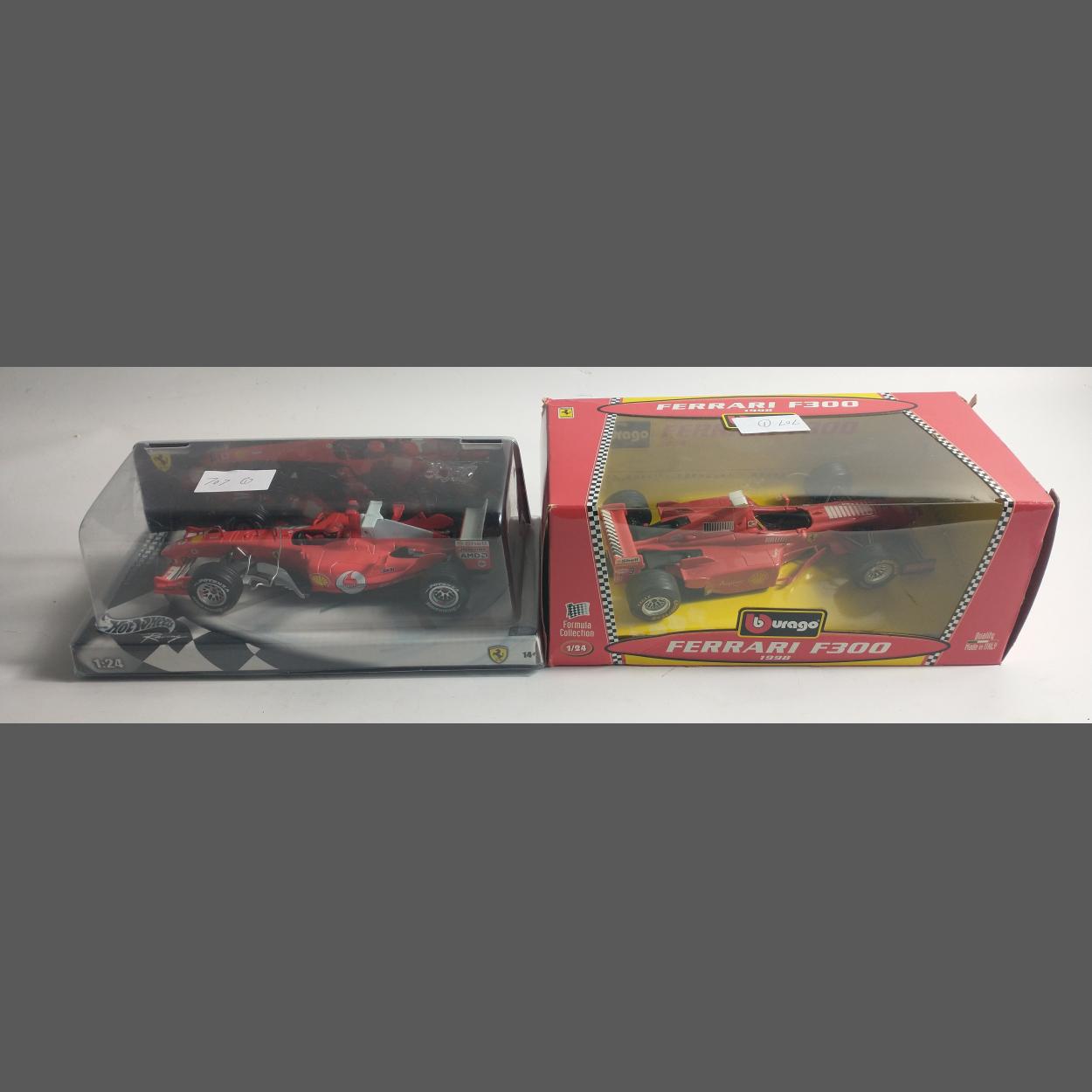 Two Ferrari F1 models, Hotwheels 1:24 and Burago F300 1998 1/24 model