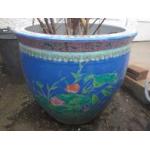 Large Blue based ORIENTAL INSPIRED garden pot with planting included