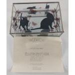 Very pretty hand-painted glass trinket box with design of cats , made in Annan, Scotland